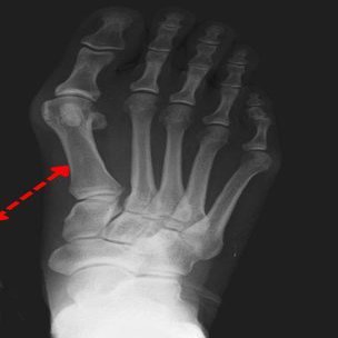 中足骨(とくに第 1 中足骨)が内側へ逃げる